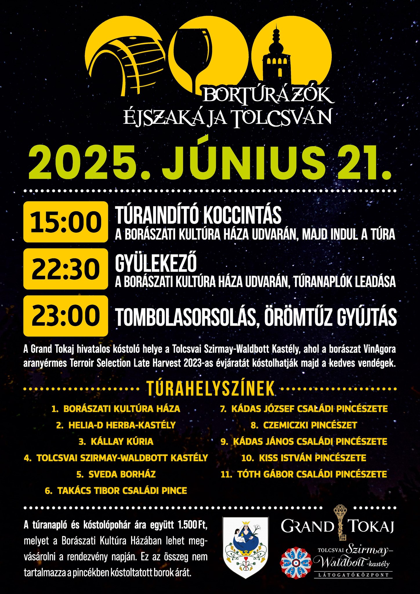 A 100%-ot teljesítő bortúrázók TOMBOLASORSOLÁSON vehetnek részt útlevelükkel a Borászati Kultúra Házának udvarán (Tolcsva, Kossuth Lajos út 32), ahol a Helia-D tokaji boros kozmetikumai is a nyeremények között szerepelnek! A jó hangulatot Szent Iván éji ÖRÖMTŰZ gyújtása koronázza meg 23 órakor ugyanitt!